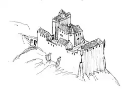 All that has survived of the castle is part of the shield wall, parts of the enceinte and the zwinger.