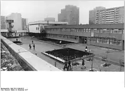 The Rieth is connected to the Erfurt city centre by Erfurt Stadtbahn tram lines 1 and 6. The name Rieth frequently appears in Thuringia as a component of place names. These are river floodplains reclaimed in the Middle Ages, which had previously become marshy and had been drained. Today's Rieth district is also located in such a floodplain between the Gera River in the west and the river Schmale Gera in the east. The Rieth was the first GDR housing estate with a complex centre in its centre, but the Johannesplatz was the first prefabricated housing estate to be built in Erfurt in 1965.