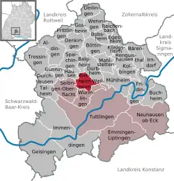 Location of Rietheim-Weilheim within Tuttlingen district ![]() | |