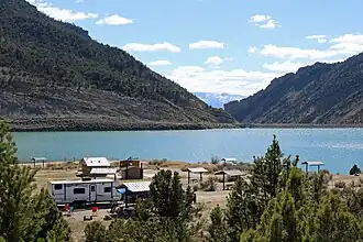 Rifle Gap State Park is a Colorado State Park located in Garfield County near Rifle, Colorado. The 1,341-acre (543-hectare) park established in 1966 includes a 360-acre (150-hectare) reservoir.[2] Plant communities are pinyon-juniper woodlands, sagebrush shrubland with deciduous riparian forest in places along the edge of the Rifle Gap Reservoir. Commonly observed wildlife include mule deer, elk and great horned owls. Park facilities include a visitors center, campgrounds, picnic sites and a boat ramp.
