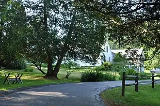 The Riggs-Zorach House stands near the end of Stone Bridge Lane in Robinhood, a hamlet in northeastern Georgetown on the banks of the Sasanoa River. The house is set on 22 acres (8.9 ha) and oriented with a view toward the water. It consists of a 2+1⁄2-story main block, to which a series of additional structures (ell, carriage barn, and barn) are connected, giving the entire structure a W shape. The main block has a combination of Federal and Greek Revival features, with narrow Federal period molding around its windows, and a Greek Revival entrance surround. The building is covered by gabled roofs, with clapboard siding and a granite foundation. The interior has Federal period wood paneling and detailing on its main staircase.[2]