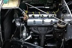 The car is powered by a four-cylinder 1,496 cc (91.3 cu in) "12/4 Engine" with one or two Zenith carburettors. Designed by Hugh Rose, it was based on the Riley Nine engine but with some significant changes including the cylinder block and crankcase being cast as one unit. It was advanced for its day with twin camshafts mounted high in the engine block, cross flow head on some versions, and Zenith or twin SU carburettors.