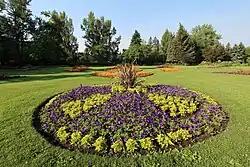 The park was once part of a 146,000 hectare parcel of land known as Cochrane Ranch. The area was homesteaded between 1888 and 1909 by the Riley family, and willed to the City of Calgary following the death of the family's patriarch, Ezra Riley.[1] The 20 acres parcel that is now Riley Park was donated to the city in 1910.[2]