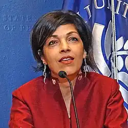 Rina Amiri (born c. 1969) is an Afghan-born American diplomat and activist who served as the U.S. special envoy for Afghan women, girls and human rights from 2022 to 2025. She served as senior advisor to the U.S. special representative for Afghanistan and Pakistan under the Obama administration,[1] has served in the United Nations in several peace building capacities, and has held senior positions in programs at Harvard, Princeton, and New York University.[2] She has provided political analysis and commentary on MSNBC, PBS, CNN, and CSPAN, and was recognized as 125 Women of Impact by Newsweek.[3]