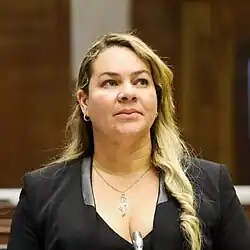 During the time when Campain was the only woman who was both in the Creating Opportunities party and in the National Assembly she had Nathalie Arias on her staff as a legislative advisor.[2] Arias would go on to join her as a fellow assembly member[2] after Campain was reelected in 2021.[1]