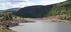 The dam and reservoir are situated at an elevation of 9,449 ft (2,880 m) about 20 mi (32 km) southwest of Creede, several miles below the headwaters of the Rio Grande.[3]