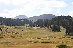 ![]() Stony Pass jeep road, east of Silverton, Colorado, along an old wagon road over Stony Pass (12,588 feet), at the edge of the Weminuche Wilderness | |
