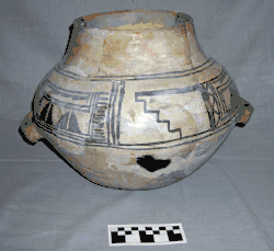 The earliest black-on-white pottery made in the region was part of the Cibola White Ware tradition, which extended across the southeastern Colorado Plateau and into areas to the east and south. Thus, for example, Red Mesa Black-on-white of the Cibola tradition is common on Rio Grande region sites of the Pueblo II. In time, however, distinctly local pottery traditions arose. At first, as in the early Cibola White Ware tradition, the black paint used to paint pottery was mineral based. (For Arroyo Hondo Pueblo outside Santa Fe, Habicht-Mauche [1993:15–17] classifies the local mineral-painted white wares as the "Rio Grande Series" of Cibola White Ware rather than as a separate tradition.) After AD 1200, organic-based black paint (which reduces to amorphous graphite during firing) became the norm (Wendorf and Reed 1955). After 1750, the black-on-white pottery tradition had died out completely among Rio Grande Puebloan peoples. Some modern potters, especially those at Acoma Pueblo, have revived the tradition.