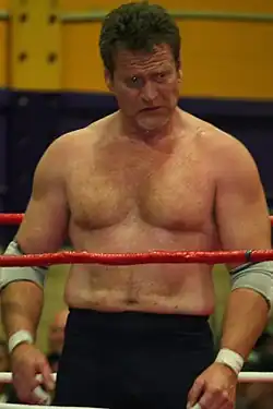 On August 27 of that year, he teamed with Diamond Dave in a tag team match against The Jersey Boys for a benefit show held at the Bavarian Club in Northeast Philadelphia. Other wrestlers on the card included King Kaluha, Larry Winters, The Cheetah Kid and Jules Strongbow.[4] At the end of the year, he began teaming with David Casanova as The Cream Team and, on December 17, they faced The Rock 'n' Roll Express (Ricky Morton & Robert Gibson) for the Virginia Wrestling Association tag team titles.[5] Successful on the Mid-Atlantic indy circuit, they wrestled The Brothers Superior (Doug Superior & Neil Superior) in a match to crown the first NWL Tag Team Champions in 1989.[3][6]