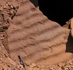 | Small | Small cross-bedding are ripples set at a height less than ten centimeters, while the thickness is only a few millimeters. Some ripples that may fit this category are wind ripples, wave ripples, and current ripples. |
