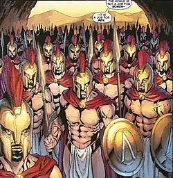 After attacking several countries and disrupting a United Nations assembly, Wonder Woman is informed of their existence and confronts them during an attack in Russia. Wonder Woman informs Achilles during battle that they are being used by outside forces and demonstrates their naivete by safely detonating a warhead they mistakenly launched in the sky above them.[8]