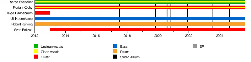 At the start, the band consisted of vocalist Aaron Steineker, guitarist and backing vocalist Florian Köchy, guitarist Helge Dannebaum, bassist Ulf Hedenkamp, and drummer Robert Kühling. A year into the project, guitarist Helge Dannebaum left the group and was replaced with Sven Polizuk.[1]