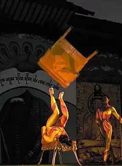 A Risley or Risley act (also antipode or antipodism) is any circus acrobalance posture where the base person is lying supine, supporting one or more flyers with hands, feet and/or other parts of the body; spinning a person or object using only one's feet.
