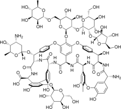 Ristocetin is a glycopeptide antibiotic, obtained from Amycolatopsis lurida, previously used to treat staphylococcal infections. It is no longer used clinically because it caused thrombocytopenia and platelet agglutination. It is now used solely to assay those functions in vitro in the diagnosis of conditions such as von Willebrand disease (vWD) and Bernard–Soulier syndrome. Platelet agglutination caused by ristocetin can occur only in the presence of von Willebrand factor multimers, so if ristocetin is added to blood lacking the factor (or its receptor—see below), the platelets will not clump.