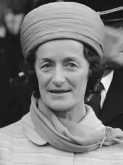 While her husband was a government minister, Childers hosted social events in their home and often accompanied him on official visits. Erskine was elected President of Ireland in June 1973, and she encouraged him to modernise the role of the Irish president. They travelled around Ireland, in particular visiting more deprived areas of the country.[1] Erskine died suddenly on 17 November 1974. The political parties secretly agreed a deal to make Mrs Childers the new president. However, a political dispute in which a partially deaf Fine Gael minister in the National Coalition government, Tom O'Donnell, misheard a journalist's question about Mrs Childers and confirmed that she would be the next president led the plan to collapse. Her late husband's political party, Fianna Fáil, withdrew its support for her and instead proposed former chief justice Cearbhall Ó Dálaigh, who was eventually elected unopposed as the joint nominee of the government and main opposition parties in the presidential election of 1974.[2][5] Reflecting on her treatment during this period, she commented that "I saw how, once again, a woman in Ireland can be regarded as mere baggage."[3]
