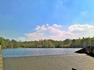 The lake at Rowley and the Brun's course onward to Heasandford is an artificial creation of the 1970s. Previously this section of the river flowed further to the west, with the Don collecting Swinden Water before meeting the Brun close to the mill lodge. Bank Hall was formerly the site of a significant coal mine that operated for over 100 years up to 1971,[10] with another near Rowley Hall that operated between 1861 and 1928, and the area was used as a spoil tip for generations. The mine workings caused significant levels of pollution in the river and the diversion scheme also allowed the valley of the old route to be used as a landfill site.[4][11][12]