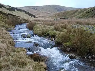 The river rises at Lankrigg Moss and flows southwards for 10 miles (16 km)[1][2] through an ancient landscape, flowing under Monks Bridge (a packhorse bridge) and by the site of Calder Abbey, as well as several tumuli and other mysterious monuments.[3] It also runs past and (indirectly) gives its name to Calder Hall, site of the world's first commercial nuclear reactor.[4][5]