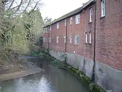 Close to its start, Ember Mill stood on an island in the Ember reached from a footbridge at the end of Orchard Lane by Imber Court, East Molesey. The mill was demolished around 1837 and the sluices and waterfalls on either side are all that remain to indicate the site.[2] The mill was originally a corn mill but was later used for manufacturing brass and iron wire.[3] This part of the Ember is bypassed by the new channel of the flood prevention scheme, but a small flow runs into the old course to keep it looking largely as it used to.[4]