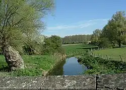 Rising right on the Northamptonshire-Bedfordshire border at the west of the parish of Newton Bromswold, it flows north-east to cross into Bedfordshire at Yelden and then into Cambridgeshire at Tilbrook. Turning south east, it divides the town of Kimbolton in two and runs past Kimbolton Castle to Stonely. It next flows past the parish church of St Andrew to the west of Great Staughton, encircling the village to the south. It flows into the Great Ouse just to the north of St Neots, where it forms the parish boundary between St Neots and Little Paxton.[3]