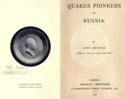 Jane Edmondson original title for Quaker Pioneers in Russia was "From the Lune to the Neva" ie from the Lune river where her parents (George & Anne Edmondson) came from, to the River Neva, in St Petersburg where she was born as part of the Quaker experiment by Daniel Wheeler who went with 32 Quakers to St Petersburg at the request of Emperor Alexander I, in order to drain the marshes so that the then capital of Russia could expand. Publication date 1902 Religious Society of Friends, Publisher London, Headley Bros.
