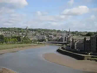 Lune at the Lune Millennium Bridge, with Lancaster in background -