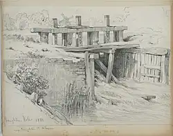 Wychall Reservoir, near the river at Kings Norton, was built in the early 19th century by the Worcester Canal Company after mill owners claimed that water was being taken from the river to fill the canal and reducing the working effectiveness of their mills. Following Kings Norton, the river flows through Stirchley. It is now culverted for much of its course through Birmingham, during which it passes through the Pebble Mill area and Cannon Hill Park then Calthorpe Park. A pair of decorative arches on the bridge where Gooch Street crosses the river mark the first settlement of Birmingham. The medieval hamlet of Birmingham was built on a crossing on the Rea in what is now Digbeth. Many of the street names in the area refer to the river or its mills. These include Rea Street, Floodgate Street, River Street and Duddeston Mill Road. There are proposals to include a riverside walk and new bridge over the Rea at Digbeth's Custard Factory media and arts complex (now complete). There are also proposals for the river to be uncovered at the Warwick Bar area of Digbeth.