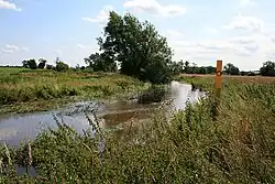 It is also used of the Saint and its tributary from Stapleton.[2][3] Antiquarian accounts of the Battle of Bosworth[4][5] label the brook upstream of Shenton "Tweed". Recent Ordnance Maps 1:25 000 (2000) label only the "Tweed River" south-west of Stapleton and the 1:50 000 (1990) map gives it no name. The lower reaches from Shenton to Ratcliffe Culey are known locally as the Saint, as used below.