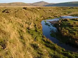 The River Taw (/tɔː/) in England rises at Taw Head, a spring on the central northern flanks of Dartmoor, crosses North Devon and at the town of Barnstaple, formerly a significant port, empties into Barnstaple Bay in the Bristol Channel, having formed a large estuary of wide meanders which at its western end is the estuary of the River Torridge.