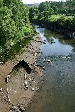 It then flows through the site of the 1990 National Garden Festival, before finally discharging into the River Tyne in Dunston. This area is known as Teams, after the river. At the mouth is the Dunston Staiths.[2]