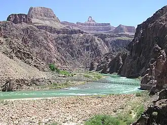 Though it has no official trailhead, the River Trail is an important link in the trail system in Grand Canyon. This trail connects the Bright Angel Trail at its western terminus with Phantom Ranch and the Bright Angel Campground via the silver suspension bridge. One mile (1.6 km) beyond the silver bridge is the eastern terminus and junction with the South Kaibab Trail. Heading north on the South Kaibab Trail leads to the Black Suspension Bridge and across the river to the North Kaibab Trail junction.[2]