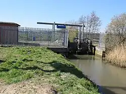 Near its mouth, the river flows through Went Lows, an area of washland bordering the river channel. There are a pair of pointing doors where the river enters the River Don, which are designed to close when high levels in the Don would result in water flowing back up the Went and causing flooding. When the doors close, water flows into the washlands, where the level continues to rise until it is sufficiently high for the doors to reopen. In extreme conditions, the doors have been known to remain shut for up to two weeks.[17] The outfall is managed by the Environment Agency, and was upgraded in 1990, when a new concrete structure was constructed. As well as two sets of pointing doors on the downstream side, it also has two vertical penstocks on the upstream side, which can be closed if debris prevents the pointing doors for closing.[18] Fenwick Fleet Drain normally discharges into the river through a flap value, but when water levels in Went Lows are high, the flap value closes to prevent reverse flow on the drain, and a storage area behind the value progressively floods.[14]