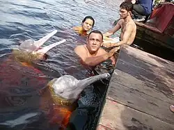 54. ^ a b Iriarte, V.; Marmontel, M. (2011). "Report of an encounter with a human intentionally entagled Amazon river dolphin (Inia geoffrensis) calf and its release in Tefé River, Amazonas State, Brazil". Uakari. 7 (2): 47–56.