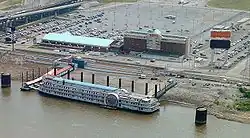 A riverboat casino is a type of casino on a riverboat found in several states in the United States with frontage on the Mississippi River and its tributaries, or along the Gulf Coast. Several states authorized this type of casino in order to enable gambling but limit the areas where casinos could be constructed; it was a type of legal fiction as the riverboats were seldom, if ever, taken away from the dock.