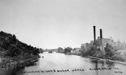 The Village of Riverdale was incorporated in 1893.[3] In 1904 the Englishman and former Chicago glucose manufacturer Charles Pope (1843–1922) [4] purchased property in Riverdale at what is today the west side of Indiana Avenue [5] with the intention of establishing a beet sugar factory. The property was previously occupied by The Riverdale Distillery, which had been established by the Union Copper Distilling Company of Chicago in 1871 to manufacture fermentum yeast. Located on the south bank of the Little Calumet river with access to the Illinois Central tracks, the beet sugar factory opened in 1905 with a capacity of 350 tons of beet sugar per day, a production rate that was eventually increased to 500 tons per day.[6] The factory was sold by Pope's heirs in 1922 to the Midwest Sugar Refining Company, who added sugar to the product line that was produced from cane supplied from Cuba and Puerto Rico.[7] and who the following year began a program that was intended "to expand this enterprise far beyond its present capacity so as to make the company one of the leading producers and refiners of sugar in the Middle West."[8] In 1947 this enterprise was replaced by The Chromium Mining and Smelting Corporation.[9]