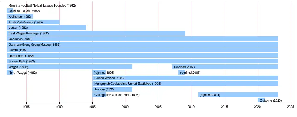 The Riverina Football League was formed in 1982 when the South West Football League (New South Wales), the Central Riverina Football League and the Farrer Football League amalgamated in order to create the Riverina Football League and the Riverina District Football League, with the latter changing its name to the Farrer Football League in 1985.