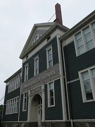 On May 27, 1997, the school was recognized as a Provincial Heritage Place under New Brunswick's Heritage Conservation Act.[5] In 2015, the Anglophone East School District held a council meeting addressing the potential closure for the school, which local residents campaigned against citing concerns such as the lengthy busing distance to the closest alternative in Hillsborough. The council unanimously voted to continue running the school.[8] Riverside Consolidated School still features a distinctive escape chute on the schoolbuilding.[9]