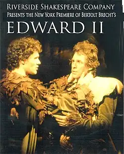 Beginning in 1982 Joseph Papp and the New York Shakespeare Festival became the principal sponsors of the company, starting with the Riverside Shakespeare Company's production of the New York Premiere of Bertolt Brecht's adaptation of Christopher Marlowe's The Life of Edward II of England in 1982,[30] also sponsored by the Goethe House of New York, and by Marta Feuchtwanger (widow of Brecht's acknowledged co-author Lion Feuchtwanger[31]).