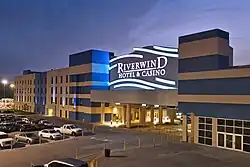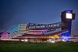 Riverwind Casino is a casino located in Norman, Oklahoma that opened in 2006. The 219,000 square feet (20,300 m2)[2] casino, owned and operated by the Chickasaw Nation, is one of the largest in the state. In addition to the casino floor, the facility also has two restaurants, a lounge, a food court, several bars, valet parking and a 1500-seat theatre that hosts concerts. Riverwind also opened a 100-room adjoining hotel in February 2009. The casino is located in at the Interstate 35/State Highway 9 west junction.