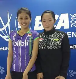 ![]() Pradipta (left) with Tiara Rosalia Nuraidah at the 2016 Indonesia Open | ||||||||||||||||||||||||||||||||||||