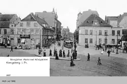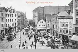 Altstadt, Löbenicht, Kneiphof, and their respective suburbs were merged to form the united city of Königsberg in 1724. However, Königsberg Castle and its suburbs, including Rossgarten, were included within the new city limits but remained under royal, not municipal, control.[5] Rossgarten was merged into the city during the Städteordnung of Stein on 19 November 1808 during the era of Prussian reforms.[6] Much of Rossgarten was destroyed by the 1944 bombing of Königsberg in World War II and the 1945 Battle of Königsberg.