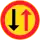 Prohibitory signs are round with yellow backgrounds and red borders, except the no parking and no standing signs that have a blue background instead of yellow.