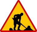 According to ΦΕΚ 1061 B '/ 1980, the poles of the signs are metal and are made of steel pipes or pipes made of aluminum alloy. The steel pipes have Carbon (0.17% to 0.30%), Sulfur (0.050% to 0.060%) and Phosphorus (0.050% to 0.060%), while the aluminum pipes, which are made of type 6005-A aluminum alloy according to the French AFNOR specification, silicon (0.60% to 0.90%), iron (0.35% maximum), manganese (0.50% maximum) and magnesium (0.40% to 0.70%) and their height is about 2.50 to 3.30 meters (8.2 to 10.8 ft).[9] The poles are usually made of steel, in the form of hollow beams, or of lightly reinforced concrete in circular sections. Two or more poles can also be used on larger signs.[7]