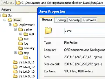 Example of third-party software (Sun Microsystems Java) storing temporary files and software updates in the roaming profile. The bloated roaming profile increases login and logout times. The stored updates shown are unnecessary after installation, yet they are not deleted.