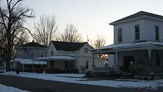 Roann Historic District is a national historic district located at Roann and Paw Paw Township, Wabash County, Indiana. It encompasses 117 contributing buildings, 2 contributing sites, and 1 contributing structure in the central business district and surrounding residential sections of Roann. It developed between about 1853 and 1961, and includes representative examples of Gothic Revival, Italianate, Queen Anne, Second Empire, Colonial Revival, and Streamline Moderne style architecture. Located in the district are the separately listed Roann Covered Bridge, Roann-Paw Paw Township Public Library, and Thomas J. Lewis House. Other notable buildings include the First Brethren Church (1891), Dersham House and Veterinary Clinic (c. 1885), Roann Christian Church (1961), Watson House (c. 1940), Universalist Church (1875), Roann Methodist Church (1898), Paw Paw Township School (1941), James Van Buskirk House (c. 1873), Halderman Building (c. 1885), U.S. Post Office and Medical Building (1958), Nicely Oil Service Station (1938), Comer Building (1920), and Spiece House (c. 1885).[2]