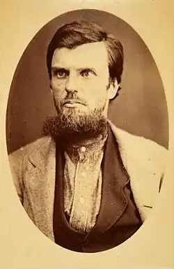 In January 1880 Howard supervised the execution of two bushrangers, Andrew George Scott (known as 'Captain Moonlite') and Thomas Rogan, for the murder of Senior-constable Edward Webb Bowen, who was mortally wounded during a confrontation with police in November 1879 at McGlede's farm near 'Wantabadgery' station, east of Wagga Wagga.[69] The shoot-out between the police and Moonlite's gang resulted in the deaths of two of the bushrangers and the capture of four others, including the leader. Senior-constable Bowen was wounded in the neck during the encounter and died six days later.[70][71] The four captured bushrangers were charged with Bowen's murder. They were tried in Sydney in December 1879; the jury found all four guilty, but recommended mercy for all except Scott. The four bushrangers were each sentenced to death, but after public agitation for mercy the Governor, Lord Loftus, granted a reprieve for two of the condemned men (both sentences commuted to imprisonment for life), leaving the law to take its course for Rogan and Scott.[72][69]