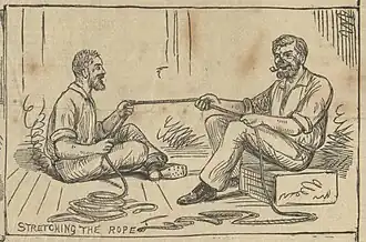 Howard arrived from Sydney on Saturday, 15 December 1877, to prepare for Murdick's execution. His arrival in the township caused consternation amongst the local hotel-keepers "as it was feared he would want board and accommodation, and none were inclined to give it to him". However, the hangman was put up in the gaol, "and did not show much about the town". On the morning of the execution, Tuesday December 18, Howard attended the cell to pinion Murdick's elbows. On the platform, with the gaoler and two ministers of religion in attendance, Howard adjusted the rope, tightened the knot and drew the white cap over the prisoner's face. Murdick refused to make any statement from the gallows. As the hangman withdrew to pull the bolt, the prisoner "trembled violently". When the trapdoor opened he "made a clutch at the rope, but it passed through his hand and he dropped about eight feet with a telling thud".[48] Death appeared to be instantaneous and after a few minutes "all muscular action had ceased". Howard probably carried out Murdick's execution by himself, as reports make no mention of an assistant hangman.[49][50]