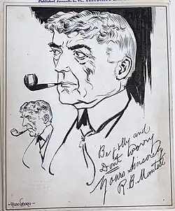 Mantell was known for having had several marriages, and often performed with his wives in Shakespearean productions. He married Marie Sheldon, who bore him two sons, Robert Shand and Jack Mantell, but the couple soon divorced. Alimony demands and arrest warrants for nonsupport kept Mantell out of New York for years.[25] He subsequently married Charlotte Behrens[26] who bore him a daughter, Ethel Mantell, in 1895.[27][28] His third wife was Marie Booth Russell who had a child from a previous relationship and who died in 1911. His last wife, Genevieve Hamper (1888–1971), was 35 years his junior, and bore him a son, Robert Bruce Mantell Jr. (1912–1933). He was close friends with professional wrestler, Alfred "Dutch" Mantell who took on Robert's last name as his real life last name was too difficult to pronounce.[29]