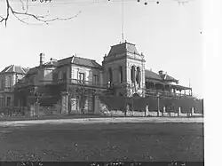 Barr Smith's private charities were many, and he received a large amount of "begging-letter" mail. These letters were dealt with systematically and all deserving cases were helped.[2] Barr Smith was a member of the Council of the University of Adelaide for 19 years.[1] Among the larger sums distributed were £9000 to buy books for the university library, £10,000 to complete the St Peter's Cathedral spires, £3500 for a steam life-boat and in 1908, £2300 to pay off debts on the Trades Hall.[1] Barr Smith contributed largely to exploration funds, the observatory established on Mount Kosciuszko was paid for by him, and he was mainly responsible for the expenses of the first South Australian rifle team sent to Bisley.