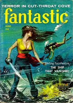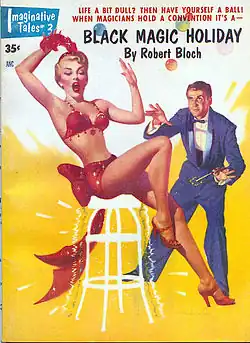 During the 1930s, Bloch was an avid reader of the pulp magazine Weird Tales, which he had discovered at the age of ten in 1927. In the Chicago Northwestern Railroad depot with his parents and aunt Lil, his aunt offered to buy him any magazine he wanted and he picked Weird Tales (Aug 1927 issue) off the newsstand over her shocked protest.[7][8][9] He began his readings of the magazine with the first instalment of Otis Adelbert Kline's "The Bride of Osiris" which dealt with a secret Egyptian city called Karneter located beneath Bloch's birth city of Chicago.[10] The Depression came in the early 1930s. He later recalled, in accepting the Lifetime Achievement Award at the First World Fantasy Convention (1975), how "times were very hard. Weird Tales cost twenty-five cents in a day when most pulp magazines cost a dime. I remember that meant a lot to me." He went on to relate how he would get up very early on the last day of the month, with twenty-five cents saved from his monthly allowance of one dollar, and would run all the way to a combination tobacco/magazine store and buy the new Weird Tales issue, sometimes smuggling it home under his coat if the cover was particularly risqué.[11] His parents were not impressed with Hugh Doak Rankin's sexy covers for the magazine, and when the Bloch family moved to Milwaukee in 1928 young Bloch gradually abandoned his interest. But by the time he had entered high school, he returned to reading Weird Tales during convalescence from flu.[7]