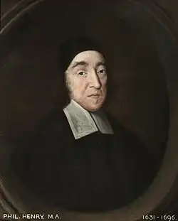 Philip Henry, a moderate Puritan ordained as a Presbyterian minister at Prees, Shropshire in 1657,[61] was a visitor at Stanwardine in the years after the Restoration, when he was ejected from his living. In 1670 he paid a pastoral visit after Corbet's grandson, also called Robert, died of smallpox.[62] He was welcomed by the Corbets exactly a year later.